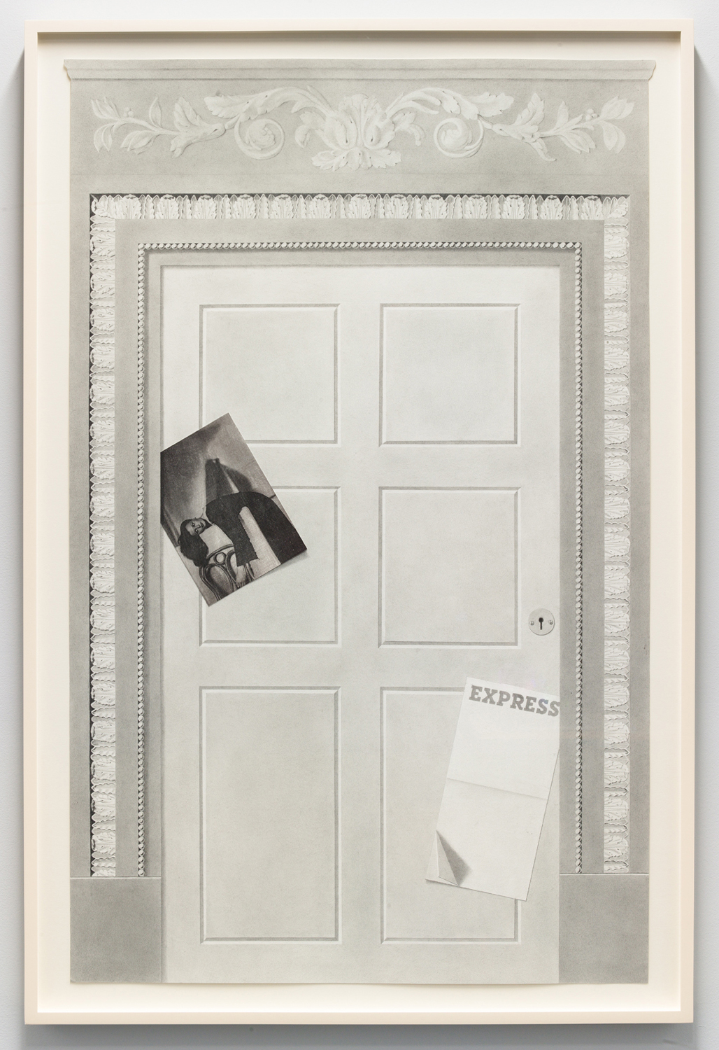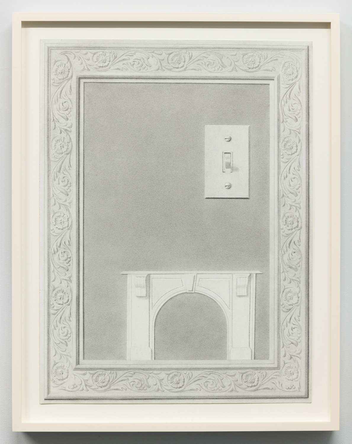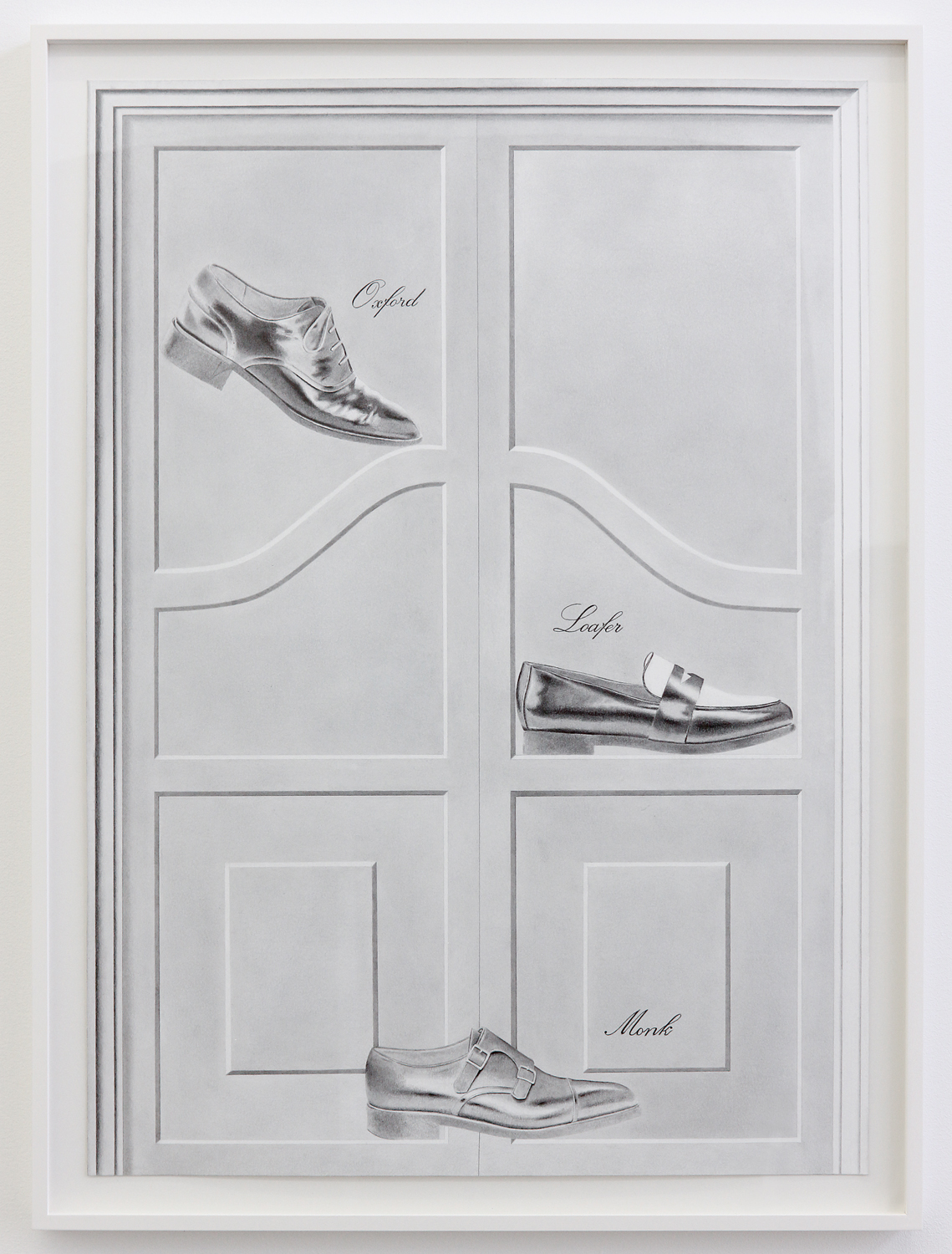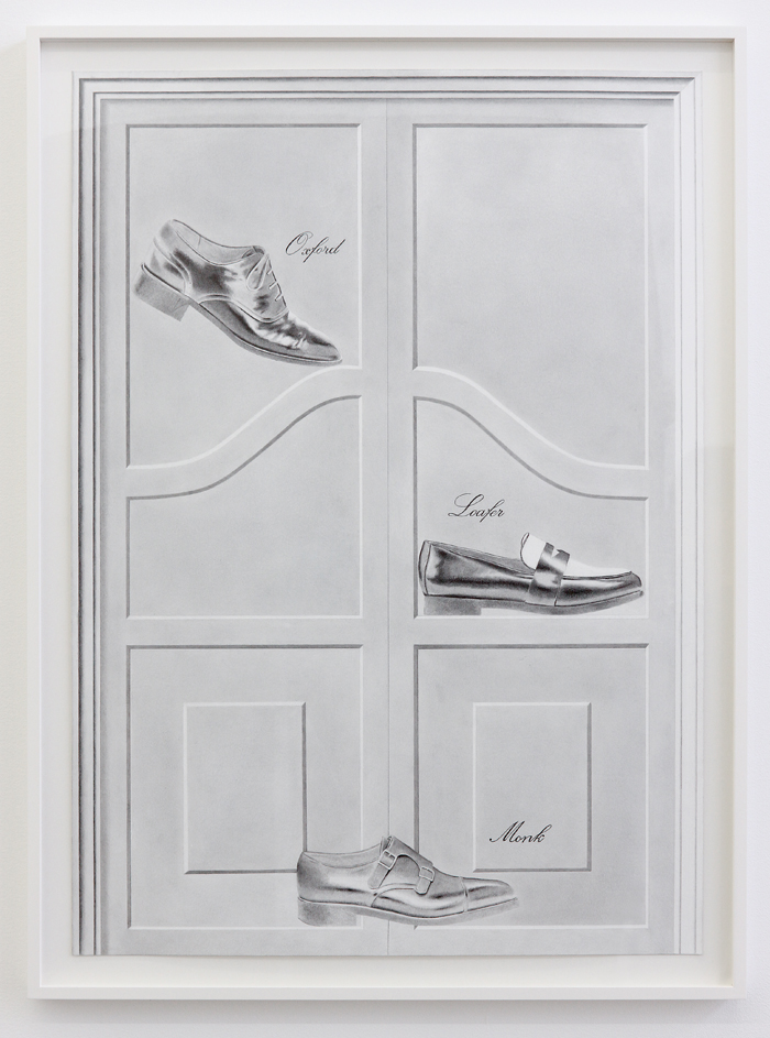![]() Entryway (express) graphite, ink, and photo transfer on paper 36 x 23 in / 91.4 x 58.4 cm ![]() Mirror (in/out) graphite, ink, and photo transfer on paper 32 1/2 x 24 in / 82.6 x 61 cm ![]() Frame (mantel, switch) graphite on paper 20 x 15 in / 50.8 x 38.1 cm ![]() Frame (entrance, lock) graphite, ink, and photo transfer on paper 20 x 15 in / 50.8 x 38.1 cm ![]() Entryway (fan, mirror) graphite on paper 32 1/2 x 24 in / 82.6 x 61 cm ![]() Corner (rotary, push) graphite, ink, and photo transfer mounted on board 24 1/2 x 17 1/2 in / 62.2 x 44.5 cm ![]() Mantelpiece (chair, screen) graphite and ink on paper mounted on board 24 1/2 x 29 1/4 in / 62.2 x 74.3 cm ![]() Checkerboard graphite on paper mounted on board 40 x 23 1/8 in / 101.6 x 58.7 cm ![]() Entryway (Contempo) graphite on paper mounted on board 40 x 23 1/8 in / 101.6 x 58.7 cm ![]() Mantelpice (gate, glass) graphite on paper mounted on board 24 1/2 x 29 1/4 in / 62.2 x 74.3 cm ![]() Shoes (Oxford, Loafer, Monk) graphite on paper 31 x 22 in / 78.7 x 55.9 cm |