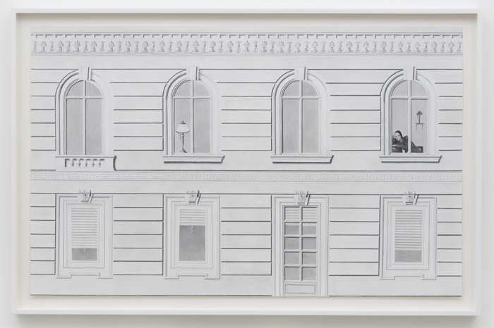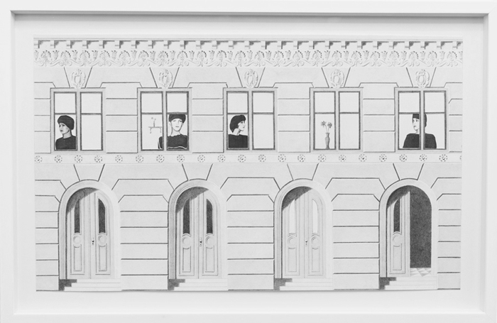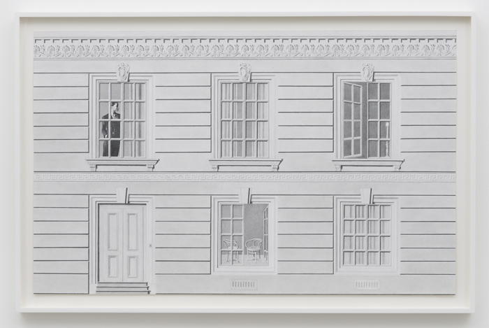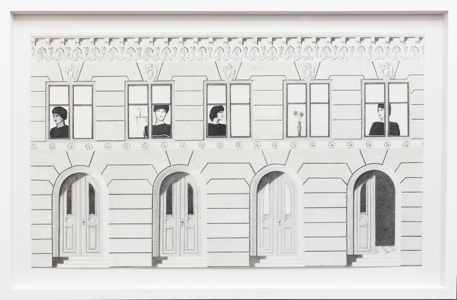 ![]() Exterior (Three Columns) graphite, ink, vinyl paint, and photo transfer on paper 12 x 9 in / 30.5 x 22.9 cm ![]() Exterior (Women's Clinic) graphite, ink, vinyl paint, and photo transfer on paper 12 x 9 in / 30.5 x 22.9 cm ![]() Mirror (Individualist) graphite, ink, vinyl paint, and photo transfer on paper 12 x 9 in / 30.5 x 22.9 cm ![]() Exterior with Four Figures graphite, ink, vinyl paint, and collage on paper 12 x 20 in / 30.5 x 50.8 cm ![]() installation view Galleria Acappella, Naples, IT ![]() Horizontal Exterior I graphite, ink, vinyl paint, and photo transfer on paper 20 x 32 in / 50.8 x 81.3 cm ![]() Horizontal Exterior II graphite, ink, vinyl paint, and photo transfer on paper 20 x 32 in / 50.8 x 81.3 cm ![]() Mirror (Checkerboard) graphite, ink, vinyl paint, and photo transfer on paper 20 x 15 in / 50.8 x 38.1 cm ![]() Entryway (Figure on Steps, Figure with Ground) graphite, ink, acrylic, and photo transfer on paper 20 x 15 in / 50.8 x 38.1 cm ![]() Entryway (Fan) graphite, ink, and acrylic on paper 20 x 15 in / 50.8 x 38.1 cm ![]() Frame (Double Columns) graphite, ink, acrylic, and photo transfer on paper 20 x 15 in / 50.8 x 38.1 cm ![]() Mantel (Two Floors) graphite, ink, acrylic, and photo transfer on paper 20 1/2 x 26 in / 52.1 x 66 cm ![]() Mantel (Shutters) graphite, ink, acrylic, and photo transfer on paper 20 1/2 x 26 in / 52.1 x 66 cm ![]() Exterior (M) graphite, ink, acrylic, and photo transfer on paper 32 x 24 in / 81.3 x 61 cm ![]() Exterior (Telephone) graphite, ink, acrylic, and photo transfer on paper 32 x 24 in / 81.3 x 61 cm |