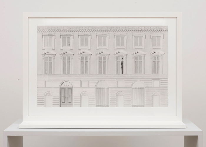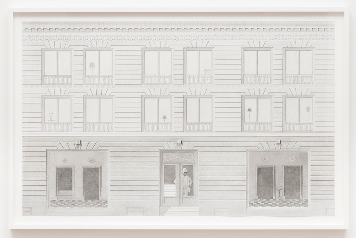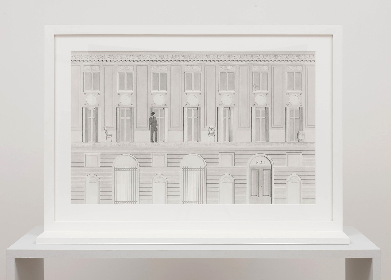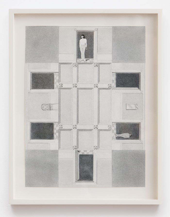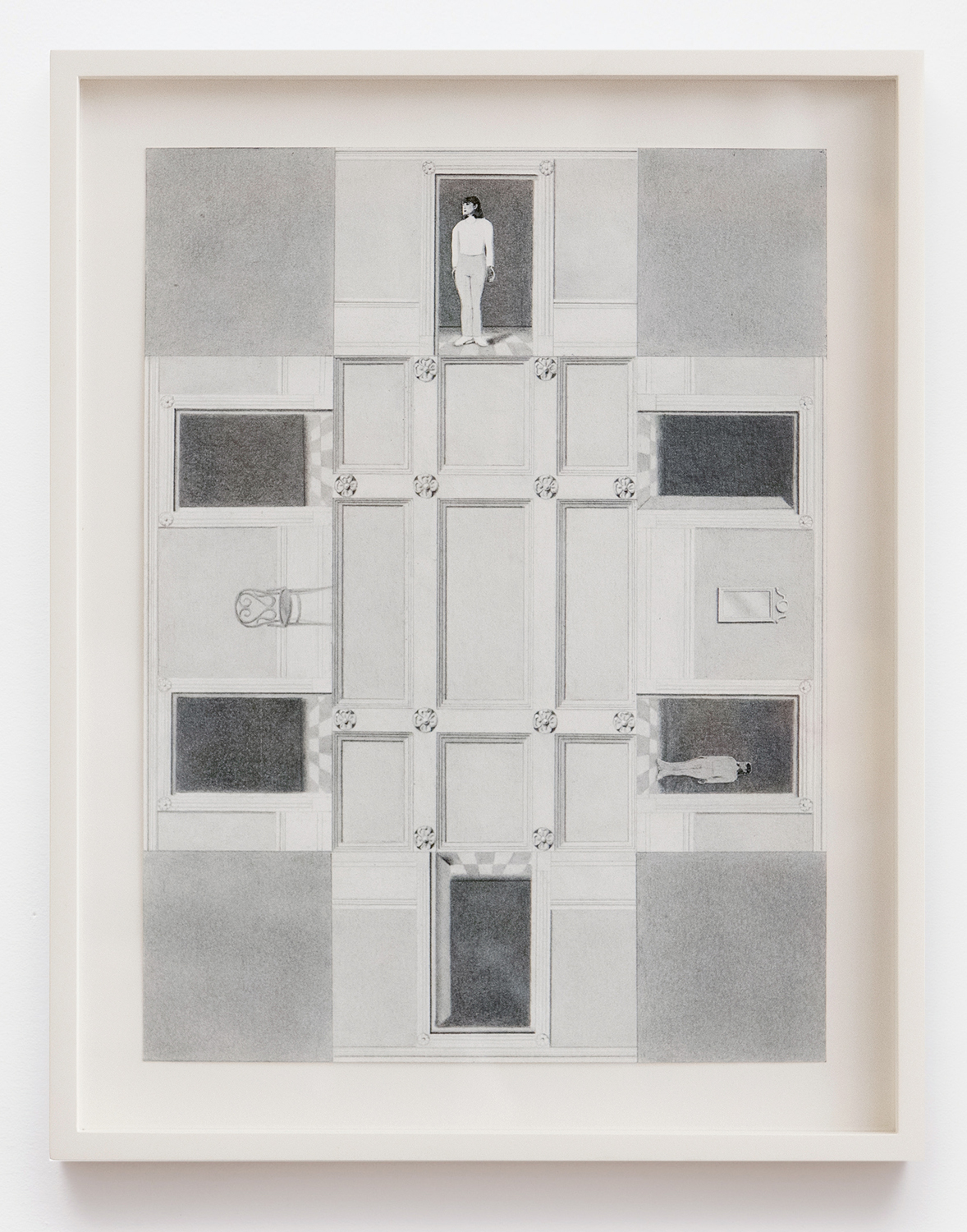 ![]() Exterior (Checkerboard) graphite, ink, vinyl paint, and photo transfer on paper 20 x 32 in / 50.8 x 81.3 cm ![]() Exterior with Scrolls graphite, ink, vinyl paint, and photo transfer on paper 20 x 32 in / 50.8 x 81.3 cm ![]() Entryway (Opening, Ground) graphite, ink, vinyl paint, and photo transfer on paper 20 x 15 in / 50.8 x 38.1 cm ![]() Ceiling Plan with Walls I graphite, ink, vinyl paint, and photo transfer on paper 20 x 15 in / 50.8 x 38.1 cm ![]() Ceiling Plan with Walls II graphite, ink, vinyl paint, and photo transfer on paper 20 x 15 in / 50.8 x 38.1 cm ![]() Recto/Verso (INN) graphite, ink, vinyl paint, and photo transfer on paper 2 parts: 20 x 32 in / 50.8 x 81.3 cm each ![]() Recto/Verso (INN) graphite, ink, vinyl paint, and photo transfer on paper 2 parts: 20 x 32 in / 50.8 x 81.3 cm each ![]() Ceiling Plan with Walls (Checkerboard) graphite, ink, vinyl paint, and photo transfer on paper 12 x 9 in / 30.5 x 22.9 cm |