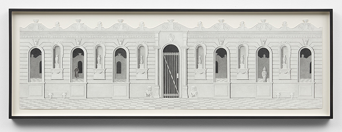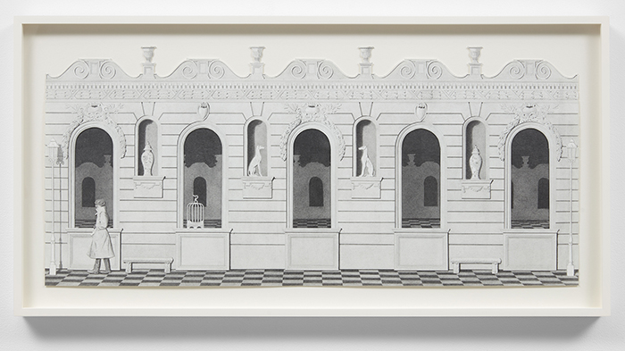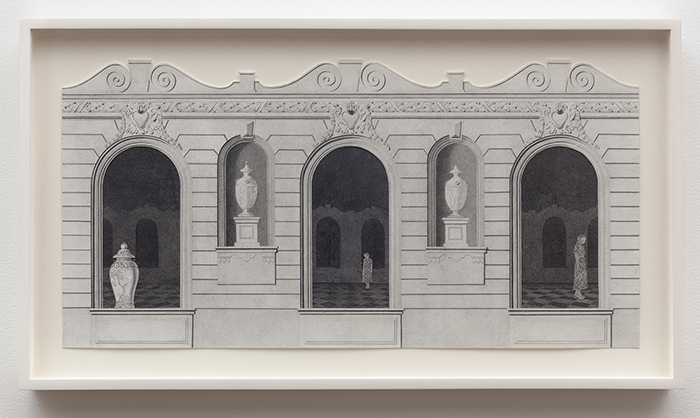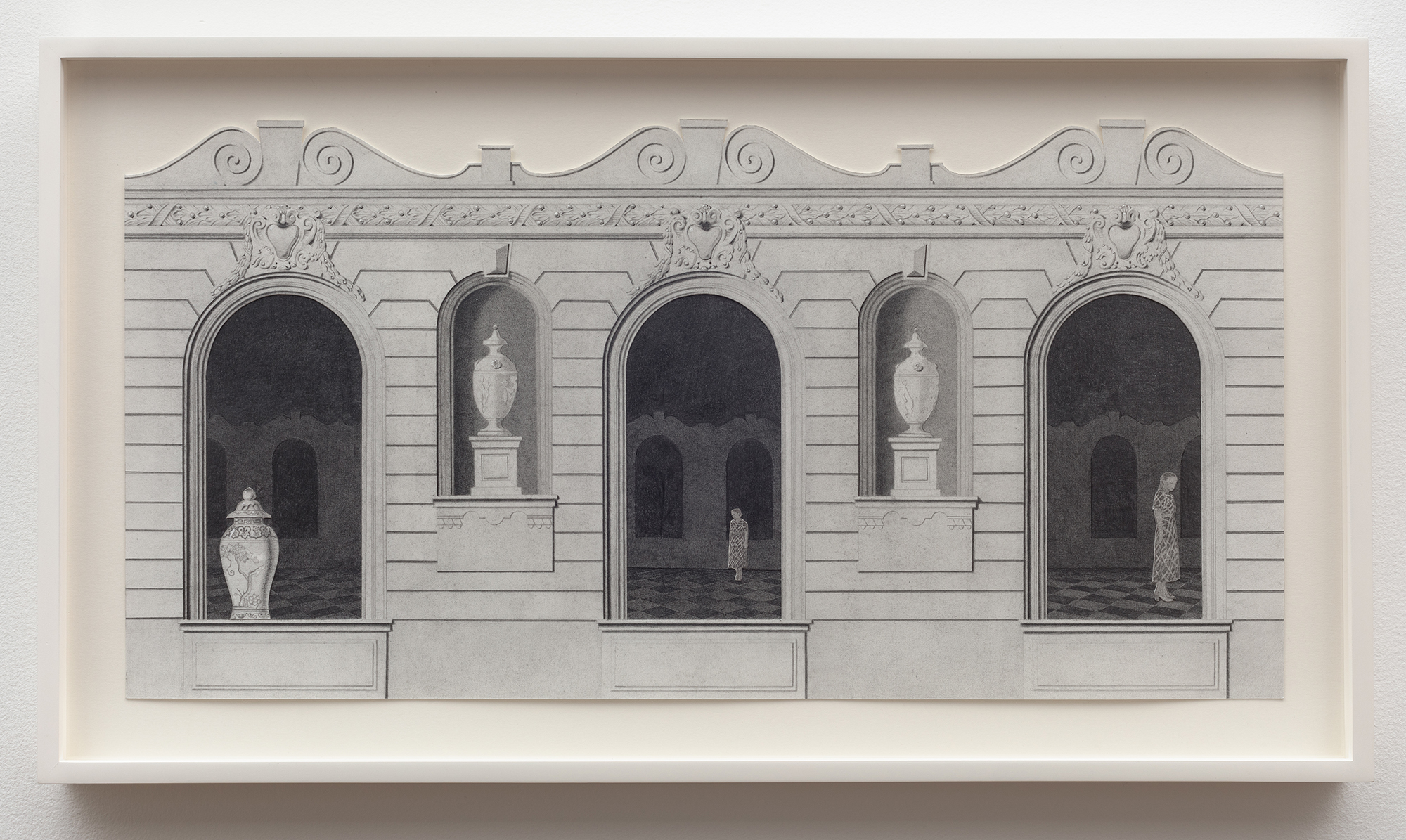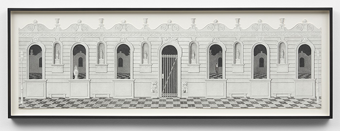 ![]() Checkered Floor I graphite, ink, vinyl paint, and photo transfer on paper 12 x 40 1/4 in / 30.5 x 102.2 cm ![]() Checkered Floor II graphite, ink, vinyl paint, and photo transfer on paper 12 x 40 1/4 in / 30.5 x 102.2 cm ![]() Clock (2:50) graphite, ink, vinyl paint, and photo transfer on paper 12 x 8 1/8 in 30.5 x 20.6 cm ![]() Clock (7:27) graphite, ink, vinyl paint, and photo transfer on paper 12 x 9 1/8 in 30.5 x 23.2 cm ![]() Installation View, Bel Ami, Los Angeles ![]() Installation View, Bel Ami, Los Angeles ![]() Facade graphite, ink, vinyl paint, and photo transfer on paper 24 x 39 in / 61 x 99.1 cm ![]() Facade with Staircase graphite, ink, vinyl paint, and photo transfer on paper 24 x 39 in / 61 x 99.1 cm ![]() Arches with Figure Walking graphite, ink, vinyl paint, and photo transfer on paper 11 x 24 1/2 in / 27.9 x 62.2 cm ![]() Arches with Figure Exiting graphite, ink, vinyl paint, and photo transfer on paper 11 x 24 in / 27.9 x 61 cm ![]() Proposal for a Clock I graphite, ink, vinyl paint, and photo transfer on paper 11 x 6 in / 27.9 x 15.2 cm ![]() Colonnade I graphite, ink, vinyl paint, and photo transfer on paper 10 x 20 in / 25.4 x 50.8 cm ![]() Portal (Hounds for Perspective) graphite, ink, vinyl paint, and photo transfer on paper 15 x 11 in / 38.1 x 27.9 cm ![]() Night Scene I graphite, ink, vinyl paint, and photo transfer on paper 28 x 15 in / 71.1 x 38.1 cm ![]() Night Scene II graphite, ink, vinyl paint, and photo transfer on paper 28 x 15 in / 71.1 x 38.1 cm |