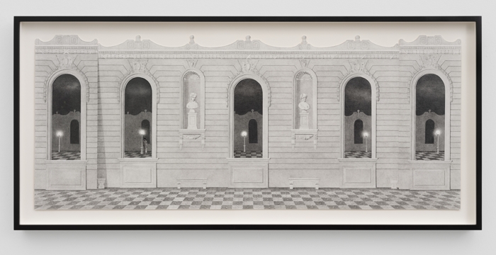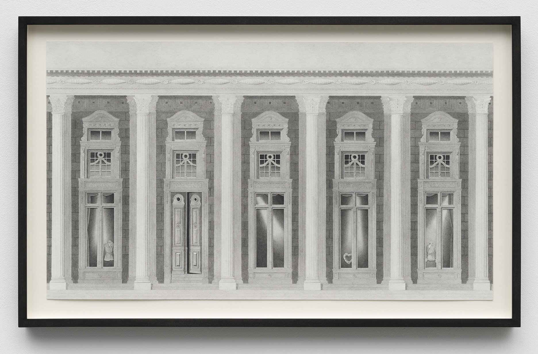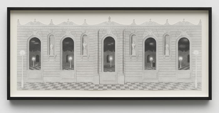 ![]() Entrances graphite and photo transfer on paper 25 3/8 x 12 3/4 in / 64.5 x 32.4 cm ![]() Arcade graphite, ink, and photo transfer on paper 15 3/8 x 26 5/8 in / 39.1 x 67.6 cm ![]() Dual Facade with Orchid graphite, ink, and photo transfer on paper 37 1/4 x 22 1/4 in / 94.6 x 56.5 cm ![]() Dual Facade with Tulip graphite, ink, and photo transfer on paper 37 1/4 x 22 1/4 in / 94.6 x 56.5 cm ![]() Entrance with Sphinxes graphite, ink, and photo transfer on paper 15 5/8 x 10 1/2 in / 39.7 x 26.7 cm ![]() Entrance with Statues graphite, ink, and photo transfer on paper 15 5/8 x 10 1/2 in / 39.7 x 26.7 cm ![]() Colonnade (Illuminated) graphite and photo transfer on paper 12 x 29 3/4 in / 30.5 x 75.6 cm ![]() Triple Facade graphite, ink, and photo transfer on paper 27 1/4 x 27 3/8 in / 69.2 x 69.5 cm ![]() Colonnade at Night graphite, ink, and photo transfer on paper 12 x 29 1/4 in / 30.5 x 74.3 cm ![]() Facade (Outerwear) graphite, ink, and photo transfer on paper 38 1/4 x 15 in / 97.2 x 38.1 cm ![]() Facade (Teatro) graphite, ink, and photo transfer on paper 15 5/8 x 10 1/2 in / 39.7 x 26.7 cm ![]() Double Windows graphite, ink, and photo transfer on paper 11 x 7 in / 27.9 x 17.8 cm |