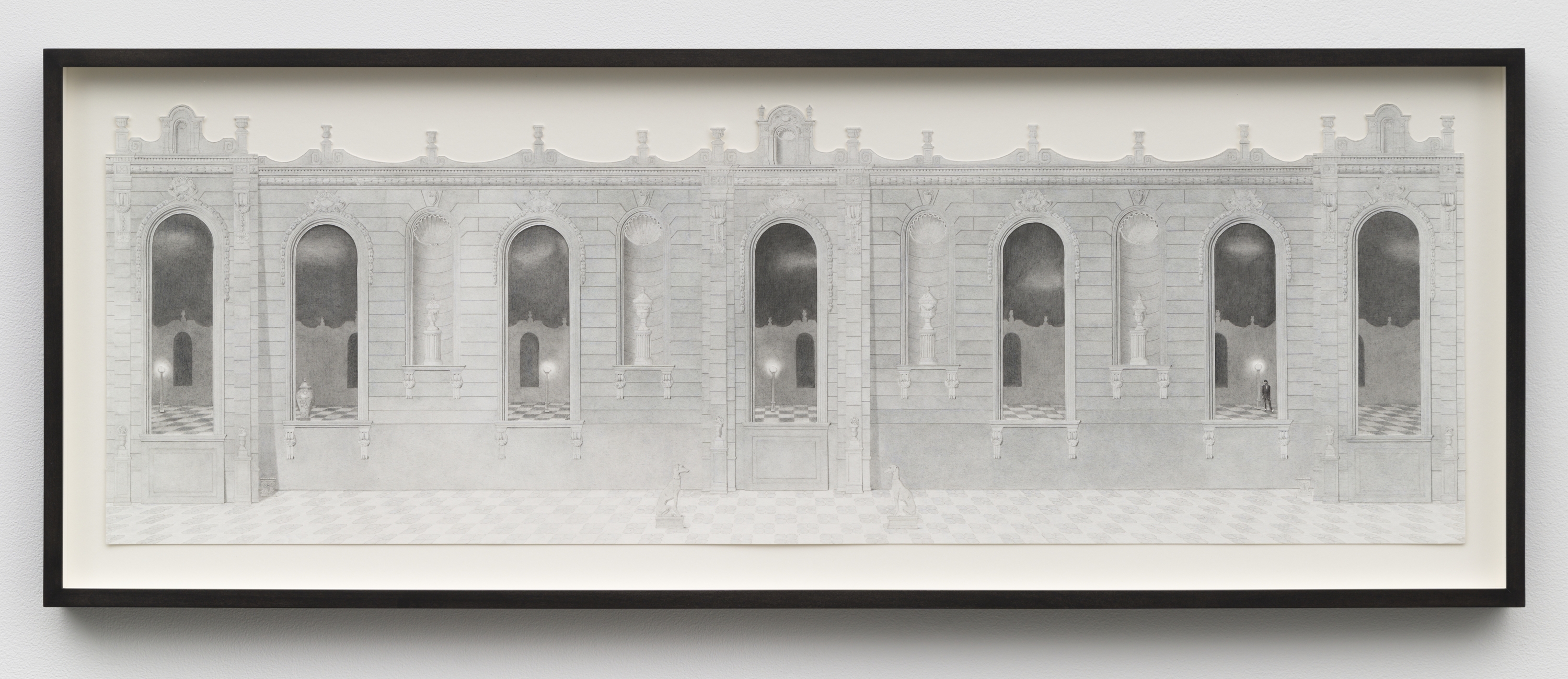 ![]() Arcade with Spotlights graphite, colored pencil, and photo transfer on paper 15 x 20 in / 38.1 x 50.8 cm ![]() Colonnade with Dogs graphite, colored pencil, ink, and photo transfer on paper 12 x 37 in / 30.5 x 94 cm ![]() Exterior (Articles) graphite, colored pencil, ink, and photo transfer on paper 33 x 15 in / 83.8 x 38.1 cm ![]() Triple exterior graphite, colored pencil, ink, and photo transfer on paper 30 3/8 x 18 3/4 in / 77.2 x 47.6 cm |
